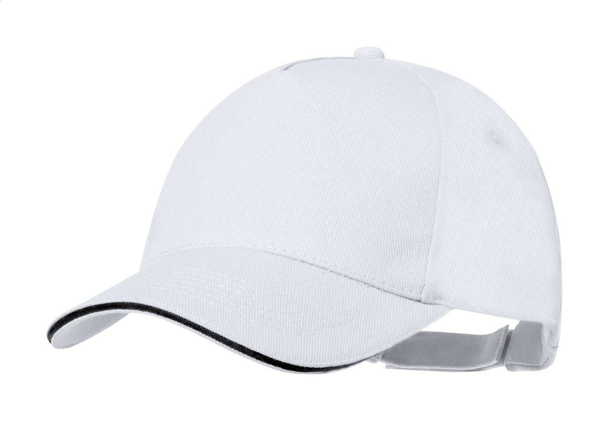 Cappellino da baseball in poliestere RPET a 5 pannelli con chiusura in velcro.