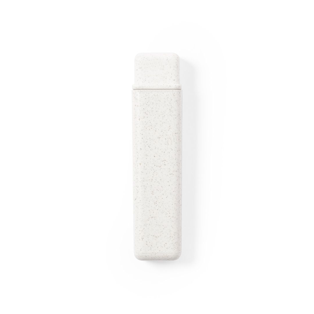 Spazzolino linea Nature. Realizzato in canna di grano, al fine di promuovere l'uso di materie prime naturali e ridurre le emissioni inquinanti. Con cappuccio di protezione.