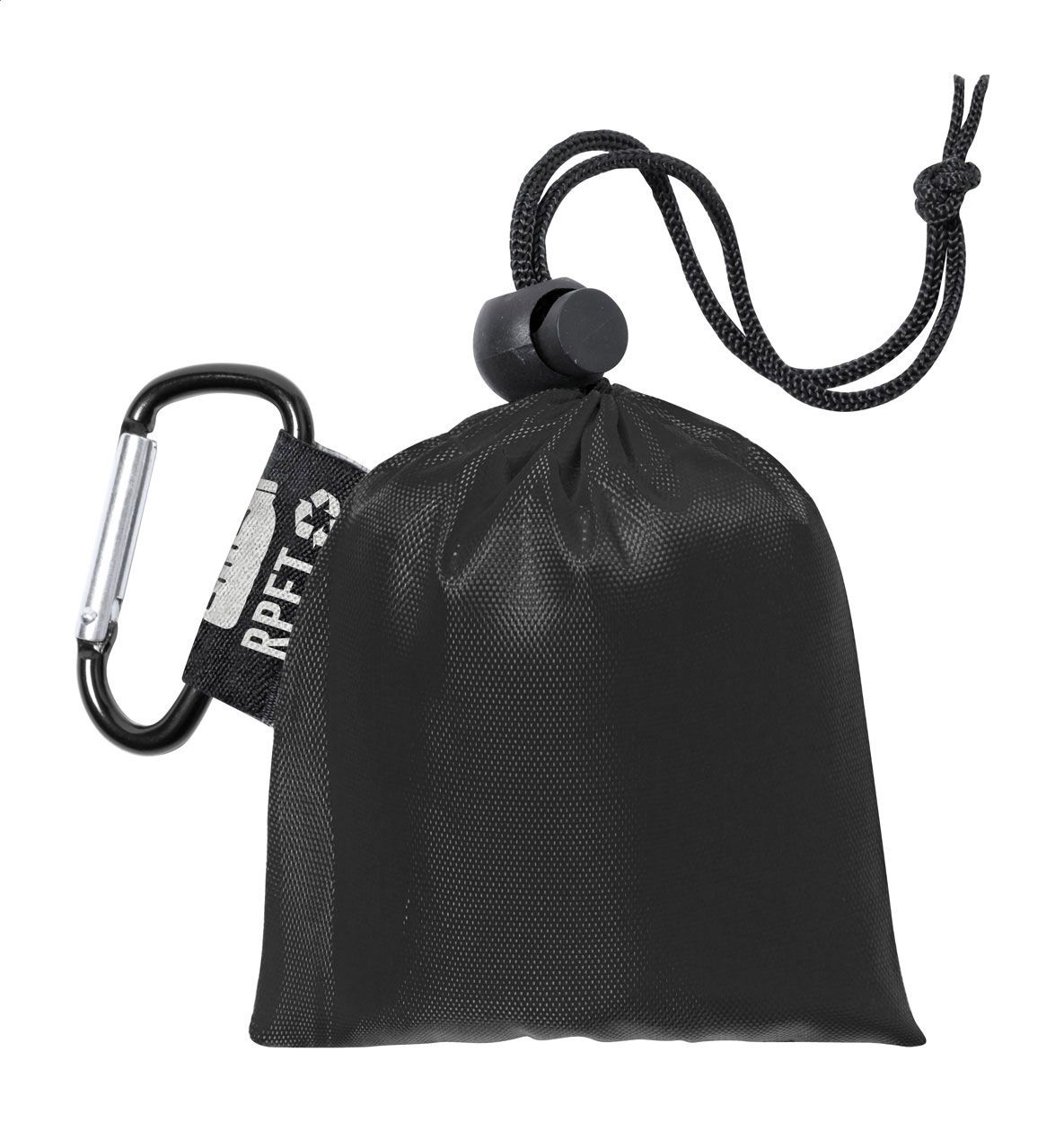 Poncho trasparente in LDPE per bambini, con custodia in poliestere RPET, etichetta RPET e moschettone in alluminio.