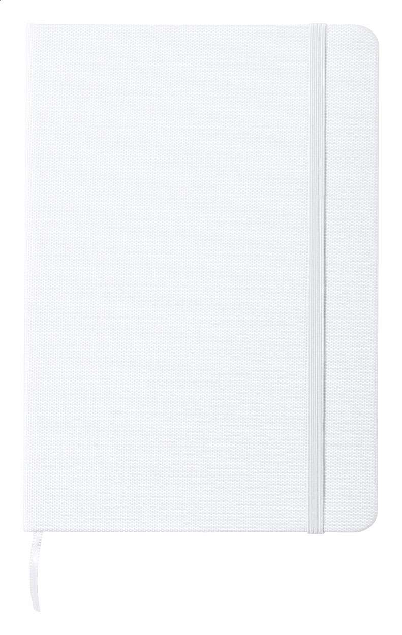 Quaderno rivestito in poliestere RPET con 80 fogli a righe, segnalibro e cinturino in gomma. Dimensione A5.