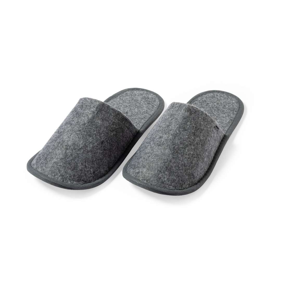 Coppia di pantofole unisex. Realizzato in resistente feltro RPET, frutto della combinazione del processo di riciclo delle materie plastiche con la millenaria tecnica di produzione del feltro, il risultato è un materiale di eco-tendenza che, oltre a essere riciclato, diventa anche riciclabile. Confortevoli interni imbottiti con cuciture rinforzate e in taglia unica 36-43.
