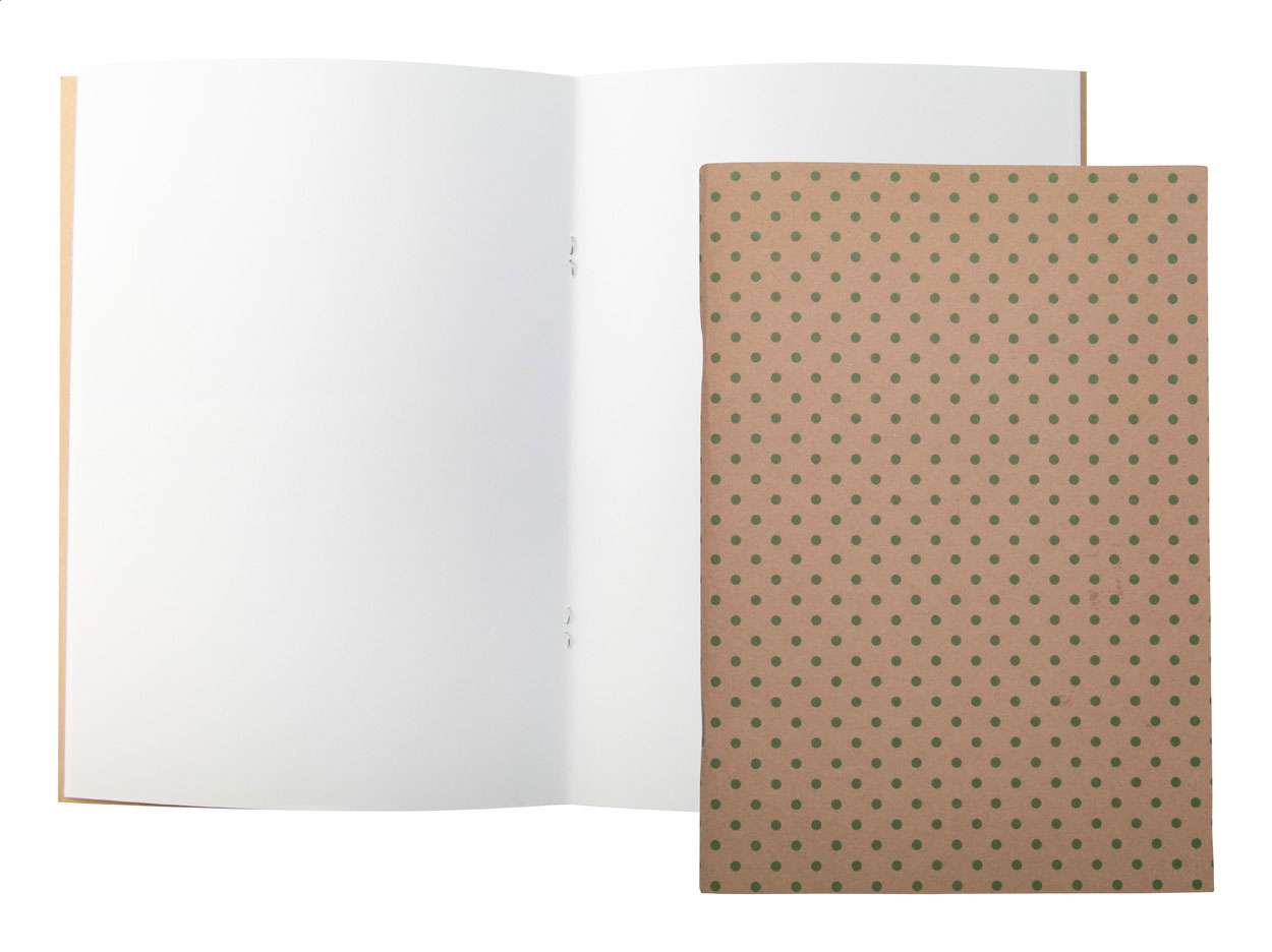 Quaderno formato A5, con copertina personalizzabile in carta kraft riciclata e 32 fogli in carta riciclata. Il prezzo include la stampa a colori della copertina esterna. MOQ: 100 pezzi.