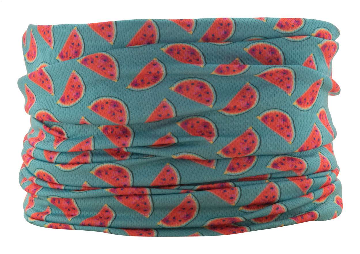 Scaldacollo multiuso in poliestere traspirante ad asciugatura rapida con grafica stampata su tutta la superficie in sublimazione. Realizzata in tessuto 100% poliestere (135 gr/m²). MOQ: 100pz.