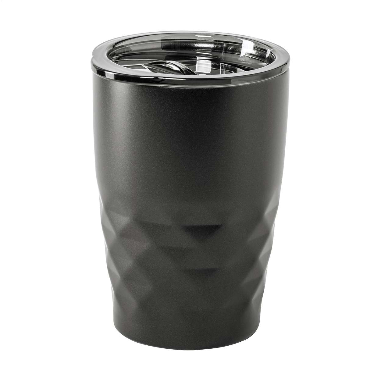 Bicchiere termico da 350ml. in acciaio a doppia parete con tappo erogatore in plastica ed isolamento in rame che permette di mantenere il contenuto caldo per 12 ore e freddo per 24 ore.