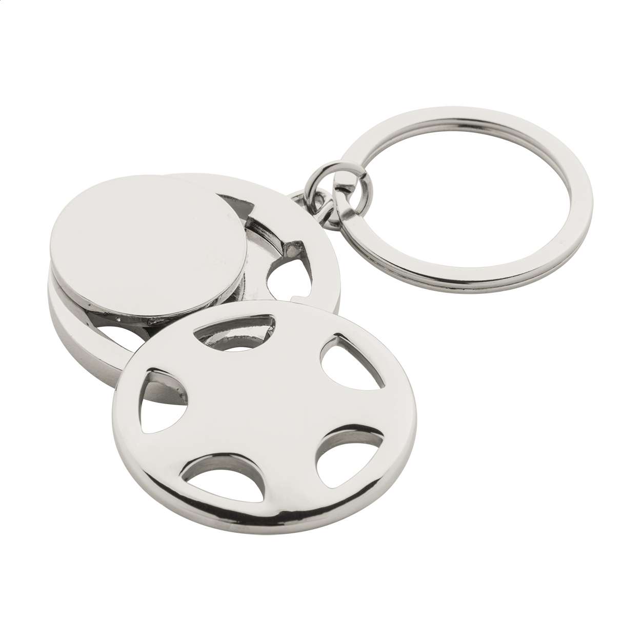 Portachiavi in metallo a forma di cerchione d'auto con gettone per il carrello della spesa, in scatola regalo nera.