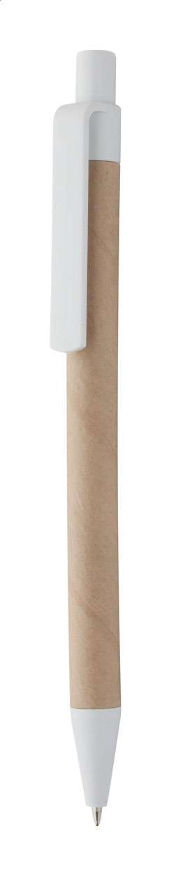 Penna a sfera in carta riciclata e plastica bianca. Fornita con refill blu.