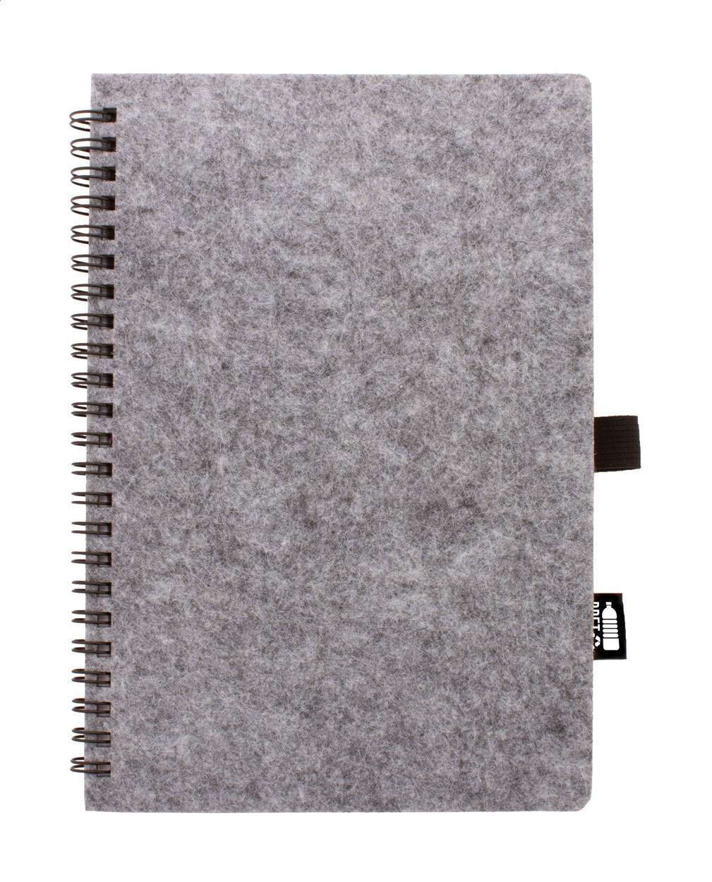 Quaderno a spirale formato A5, con copertina in feltro RPET, 80 fogli a righe in carta riciclata ed etichetta RPET.