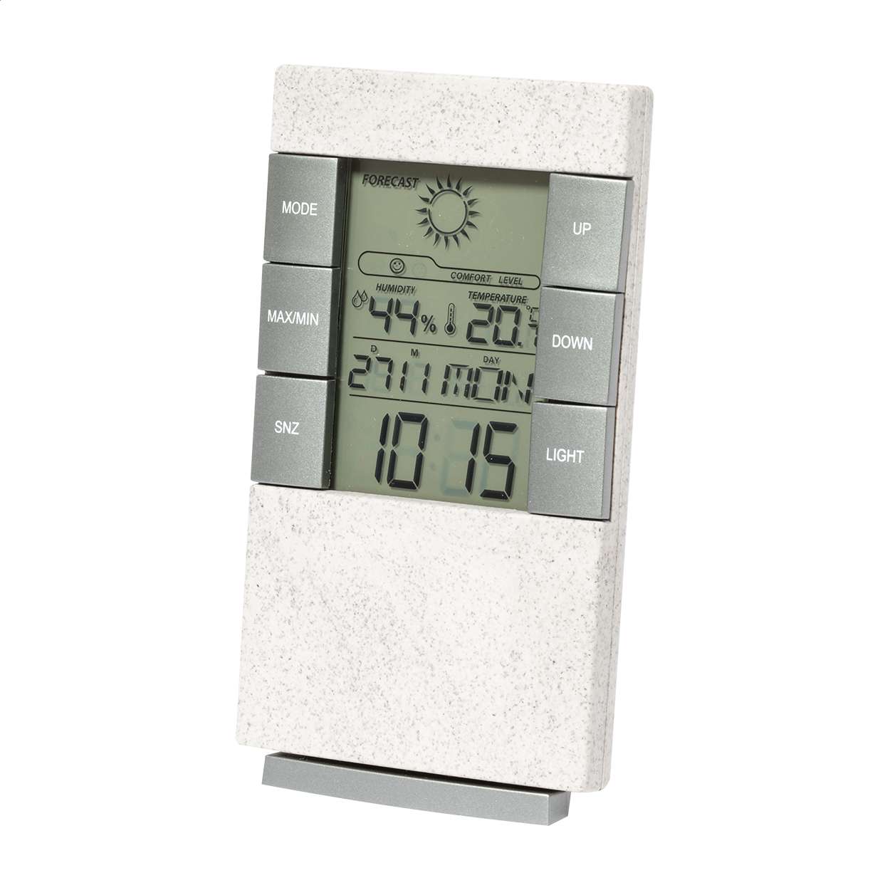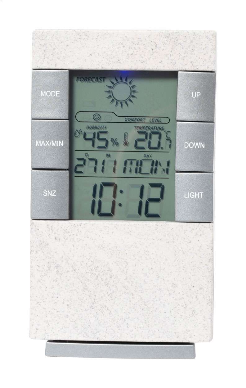 Orologio digitale e stazione meteorologica in plastica ecologica di paglia di grano con termometro ed igrometro. Funziona con 2 batterie AAA, non fornite.