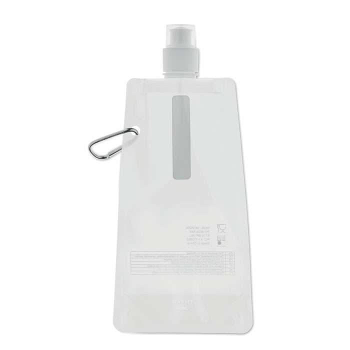 Borraccia pieghevole in PET, BPA free con moschettone in alluminio. 480ml. Antigoccia.