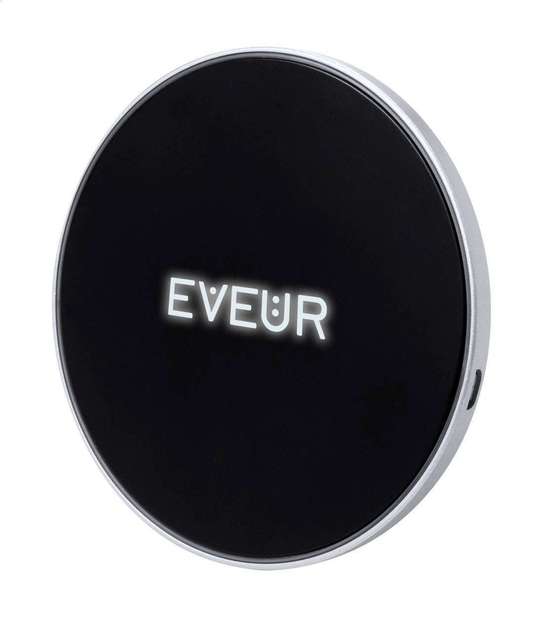 Caricatore wireless (5W) in plastica per cellulare, luce LED interna in grado di illuminare la personalizzazione ad incisione. Cavo di ricarica USB incluso.