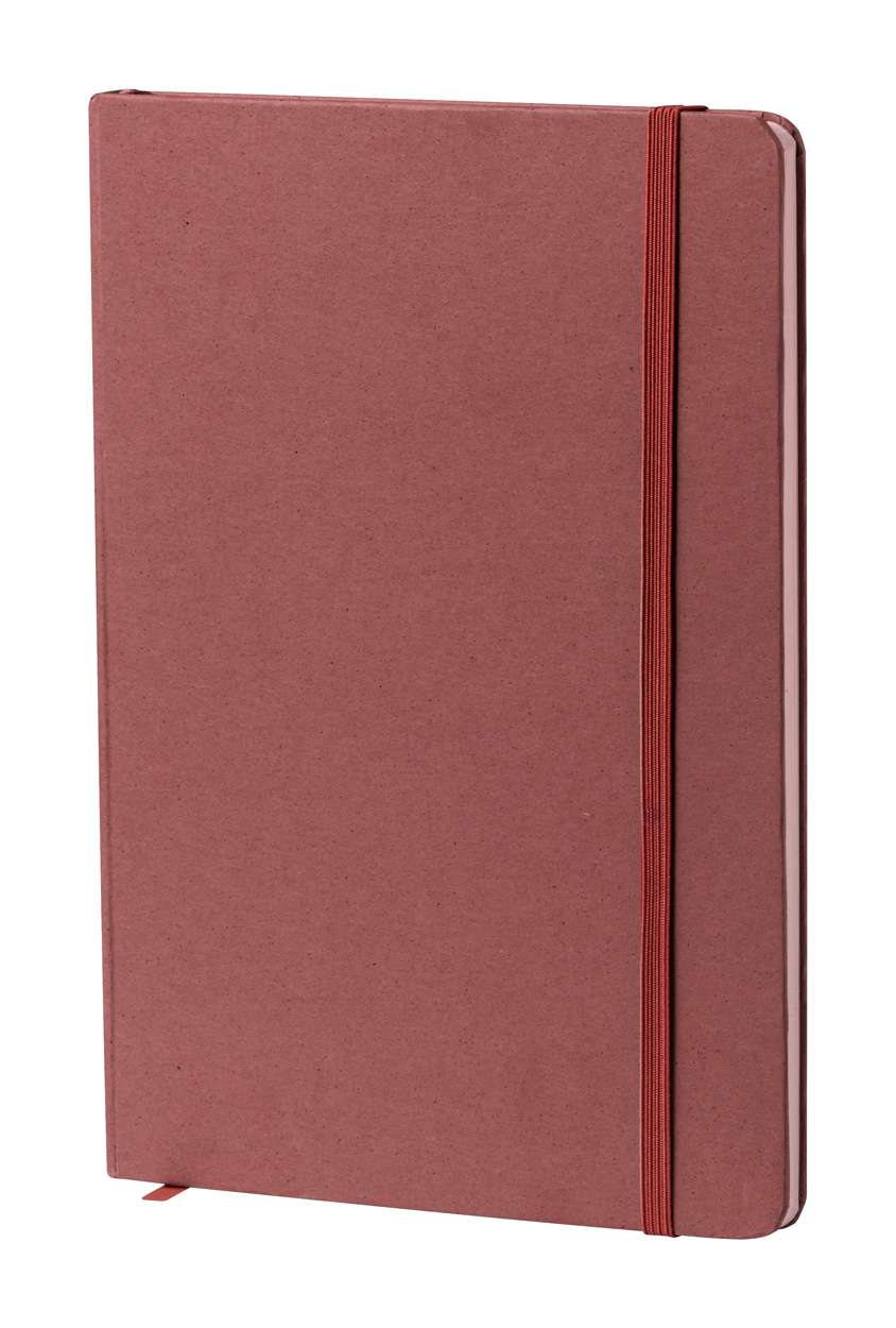 Quaderno formato A5 con copertina in carta da frutta, 80 fogli a righe in carta riciclata, segnalibro ed elastico in gomma.