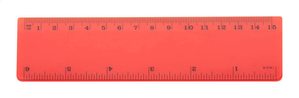 Righello di 15 cm in plastica con scala cm e pollici.