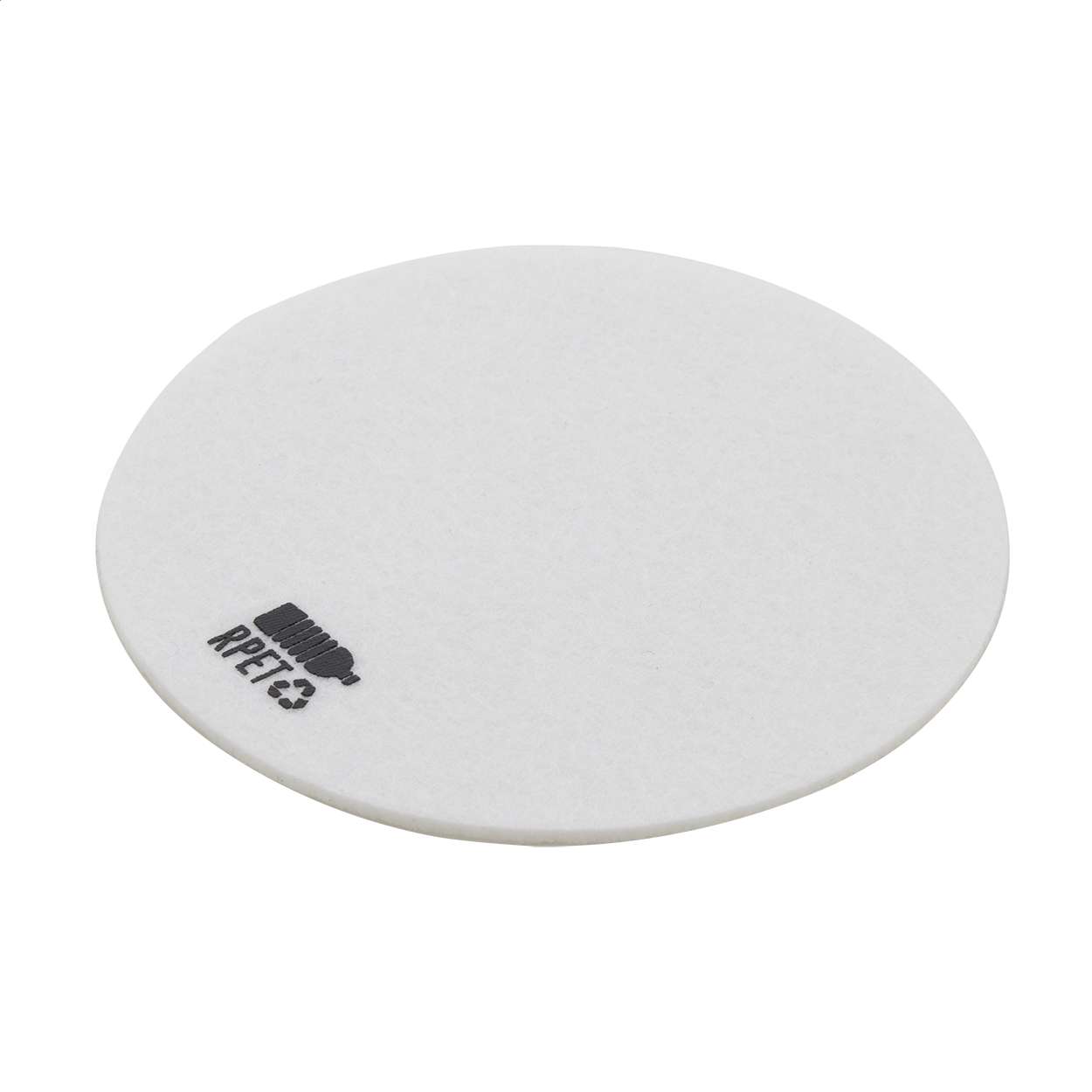 Sottobicchiere rotondo in feltro RPET, con stampa marchio RPET.