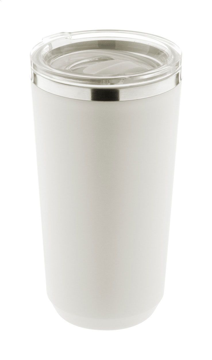 Bicchiere termico a doppia parete in acciaio riciclato con capacità di 350ml. e coperchio erogatore in PP.