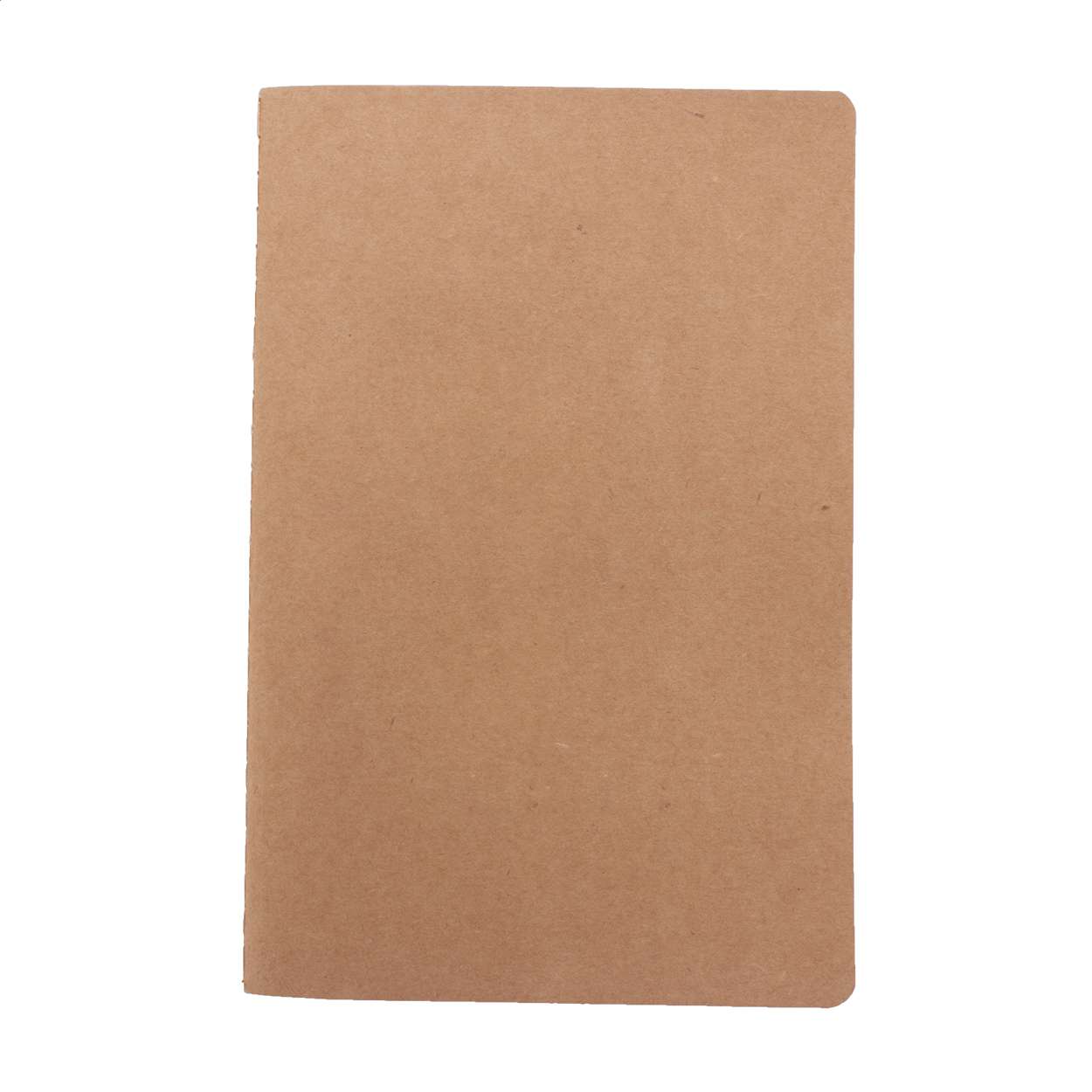 Quaderno formato A5 con copertina in carta riciclata e 60 fogli bianchi in carta kraft riciclata.