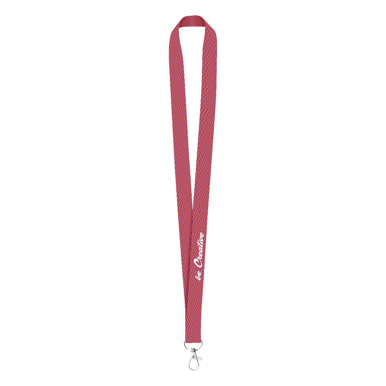 Lanyard in poliestere con moschettone in metallo. Stampa in sublimazione su entrambi i lati. Ordine minimo: 100pz.