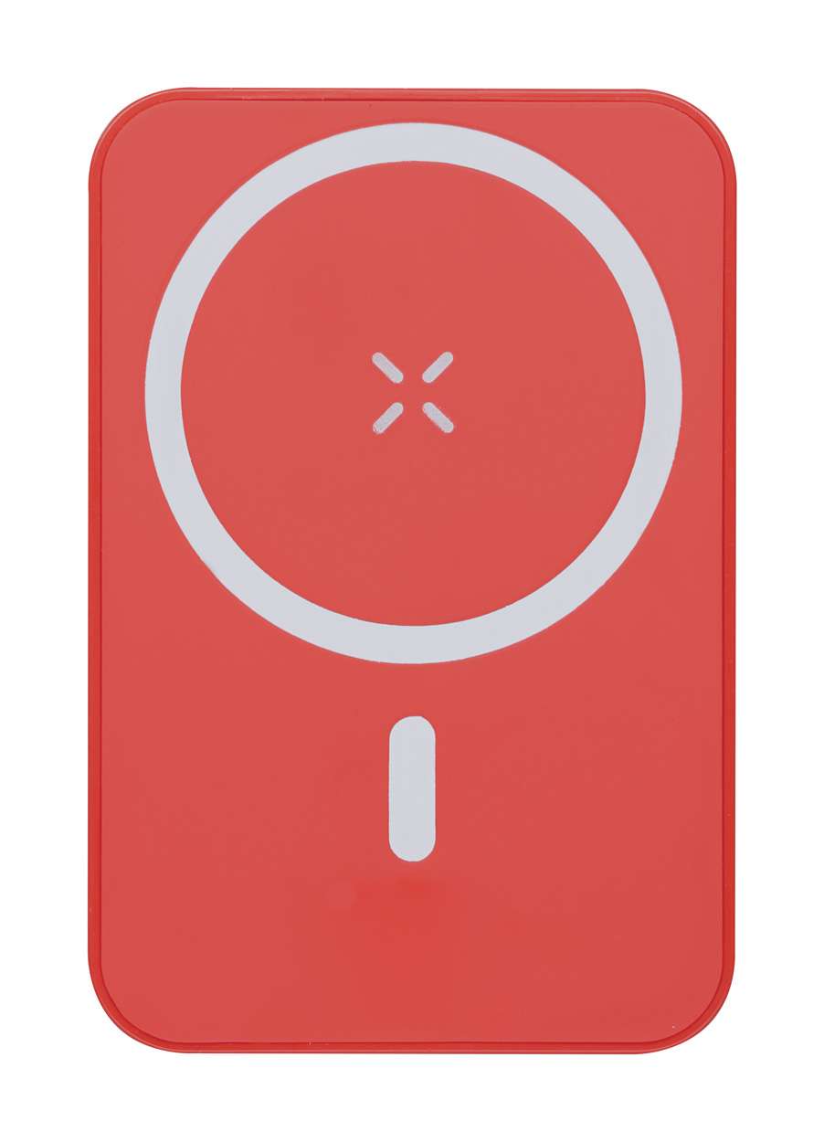 Power bank in plastica ABS con batteria da 5000 mAh e caricatore wireless magnetico integrato (5W). Con ingresso USB-C e porta di ricarica. Compatibile con iPhone® 12 o più recente. Cavo di ricarica USB incluso.