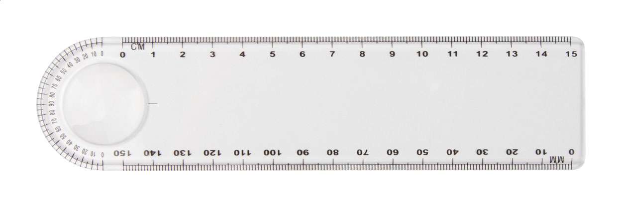 Righello in plastica di 15 cm con lente di ingrandimento.