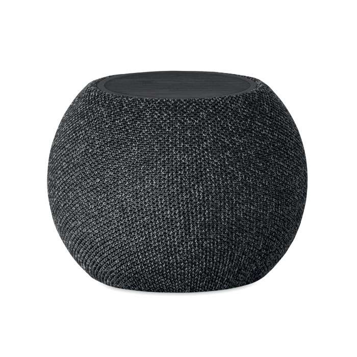 Speaker wireless 5.0 e ricarica wireless 15W in ABS, tessuto RPET e dettagli in bambù sulla parte superiore. 1 batteria ricaricabile Li-ION da 1200 mAh inclusa. Porta per schede SD e un cavo AUX/USB. Dati di uscita: 3W, 3 Ohm e 5V. Tempo di riproduzione di circa 5 ore.