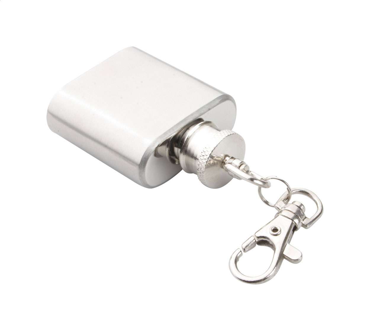 Mini fiaschetta in metallo da 30 ml con portachiavi a moschettone.