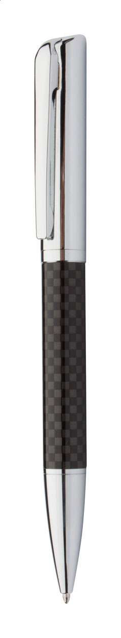 Penna a sfera corpo in metallo decorato carbon look e refill blu.