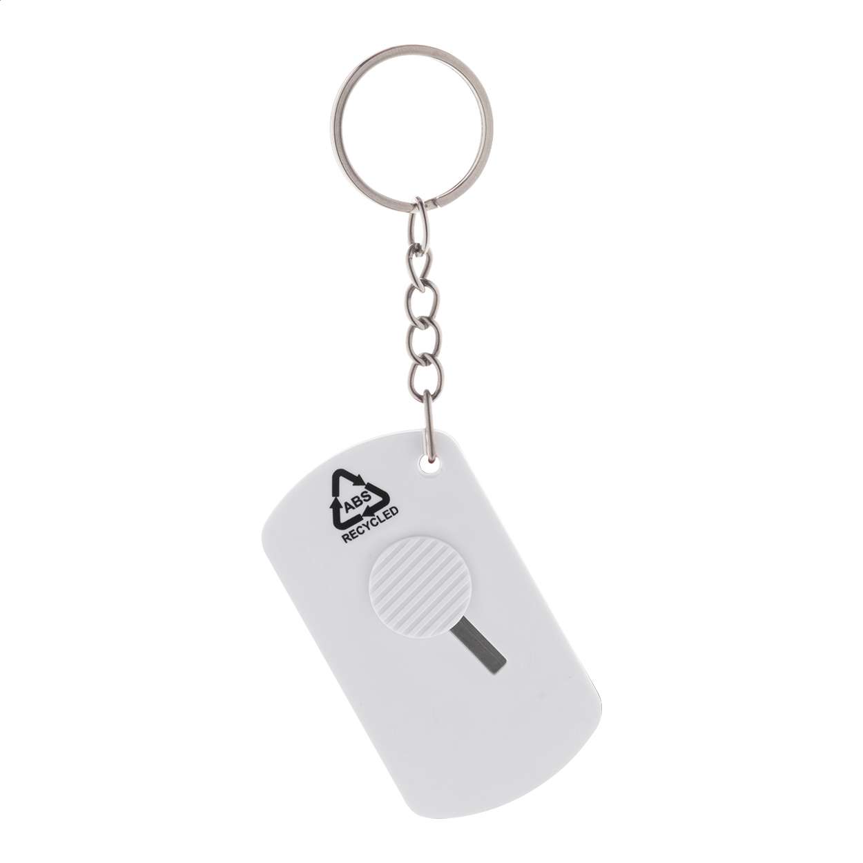 Coltello tagliacarte in plastica ABS riciclata e acciaio inossidabile con lama auto-retrattile e portachiavi in metallo.