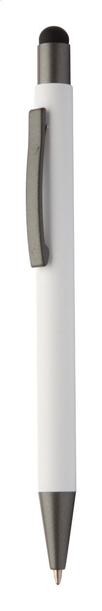 Penna a sfera in alluminio con gommino capacitivo e refill blu.