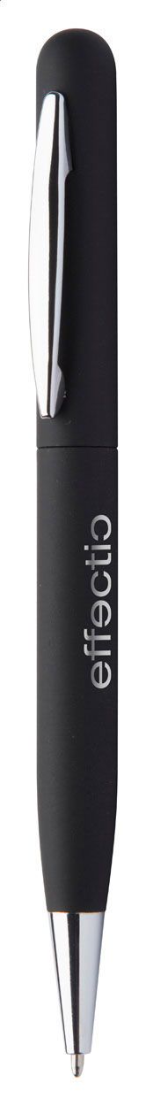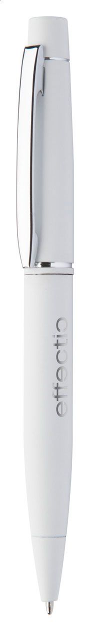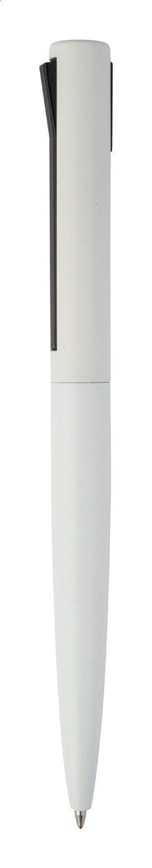 Penna a sfera in alluminio riciclato in colore metallizzato opaco, con refill blu, fusto superiore in ABS riciclato e speciale movimento a clip.
