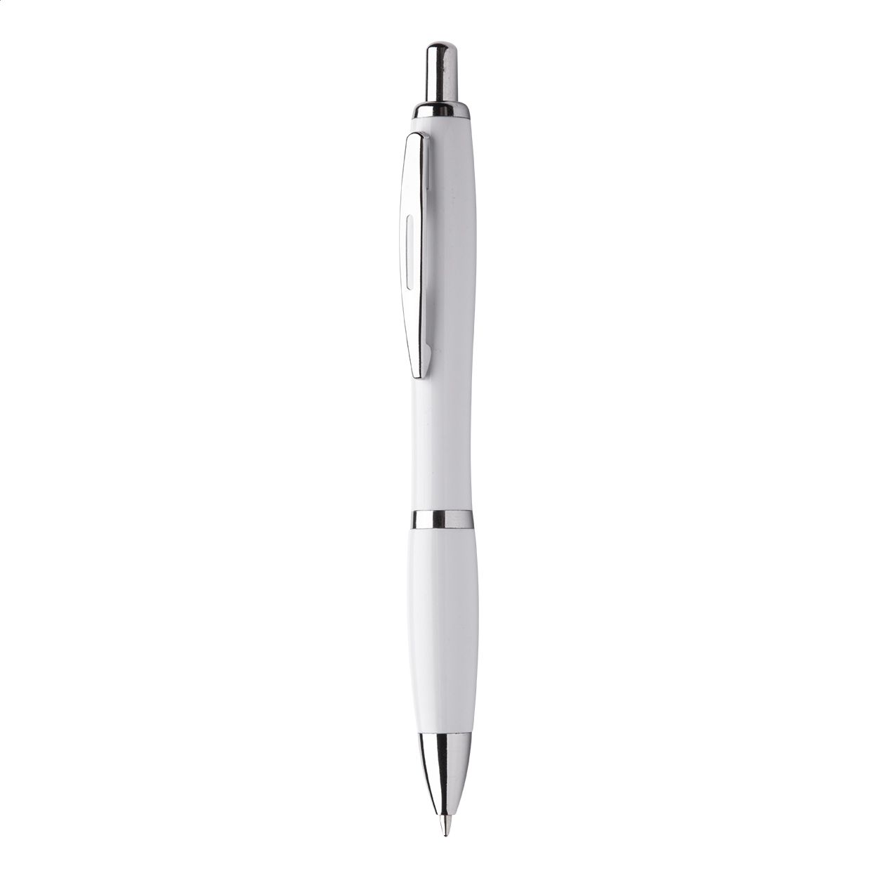 Penna a sfera in plastica con impugnatura in gomma coordinata. Fornita con refill blu.