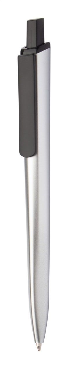 Penna a sfera in plastica con particolari neri e finitura opaca metallizzata. Fornita con refill blu.
