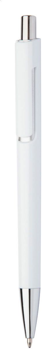 Penna a sfera in plastica bianca particolari colorati e puntale cromato. Fornita con refill blu.