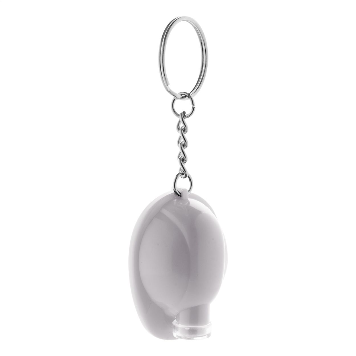 Portachiavi a forma di casco di sicurezza in plastica con luce a LED. Con batteria a bottone.