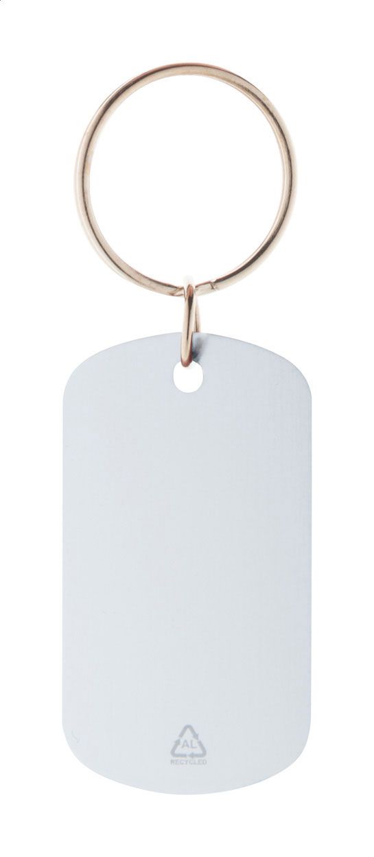 Portachiavi in alluminio riciclato a forma di casa con anello in metallo.