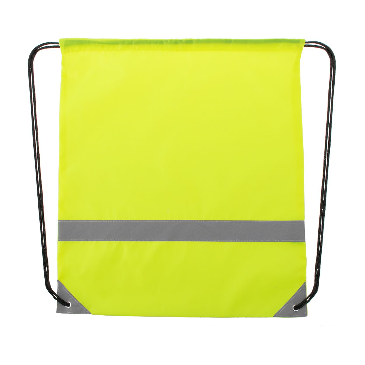 Sacca alta visibilità, con chiusura a coulisse, 2 bande riflettenti e ulteriore chiusura in velcro. Solo per uso promozionale, il prodotto non può essere considerato un dispositivo di protezione personale.