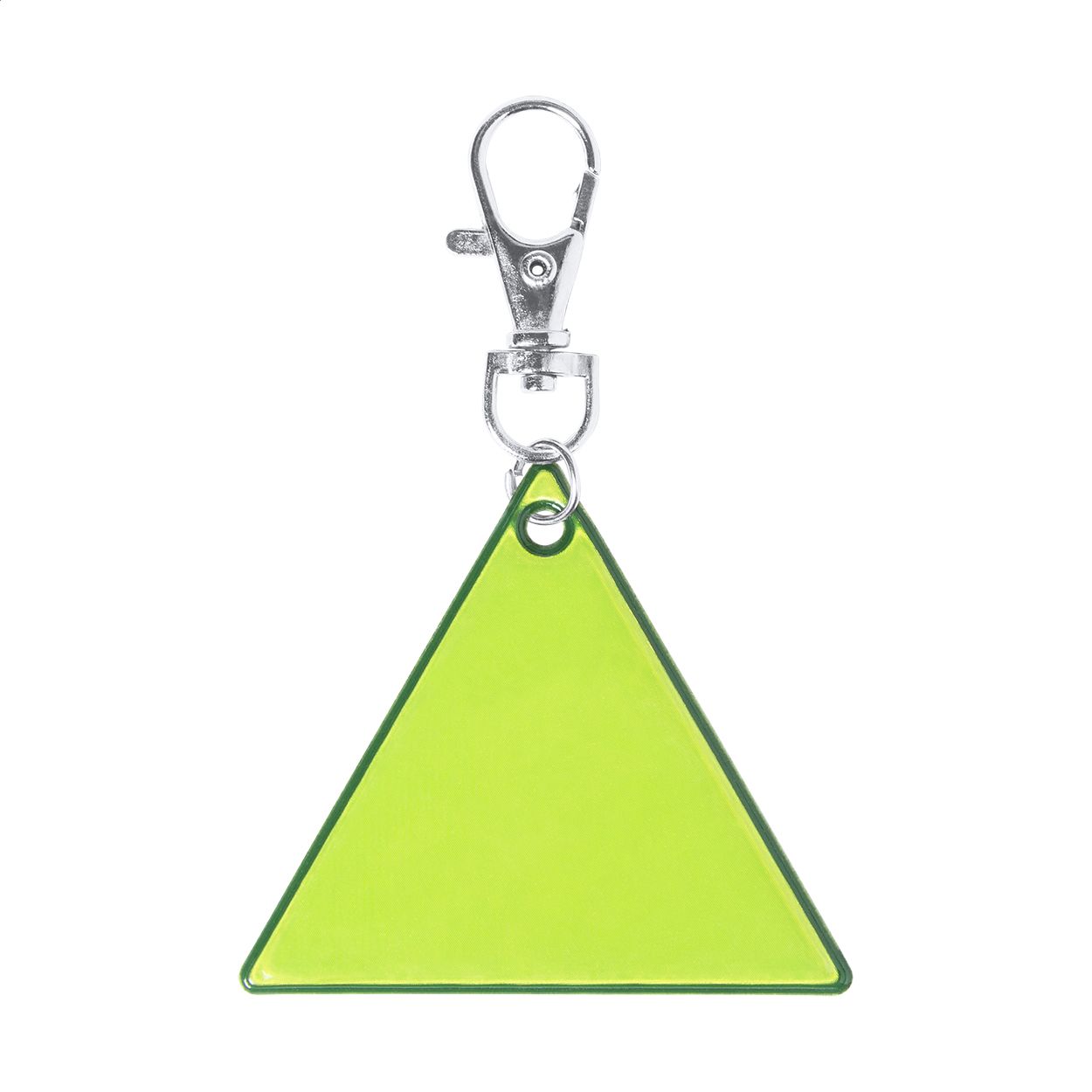 Portachiavi riflettente a forma di triangolo con moschettone, PVC. Solo per uso promozionale, il prodotto non può essere considerato un dispositivo di protezione personale.