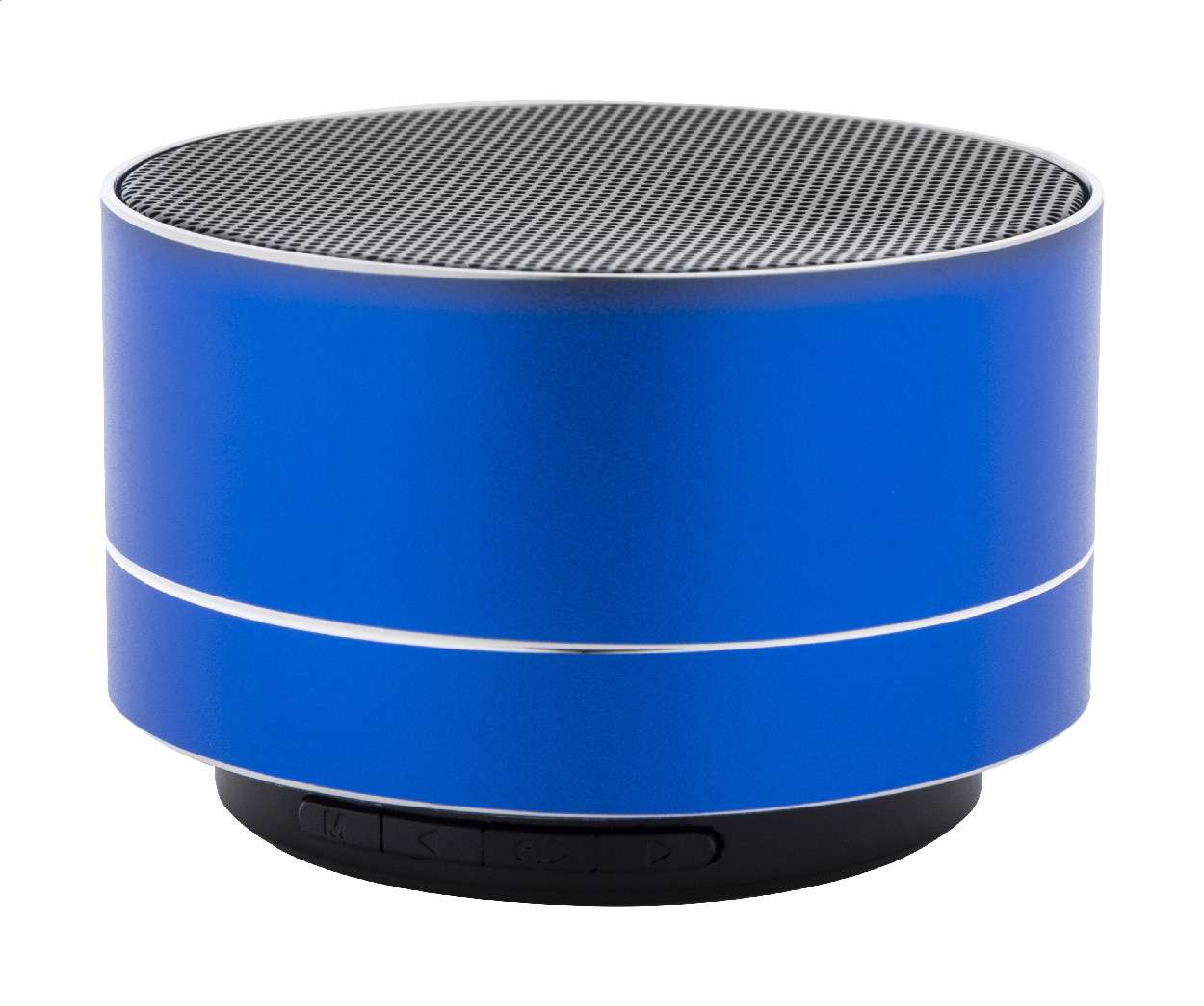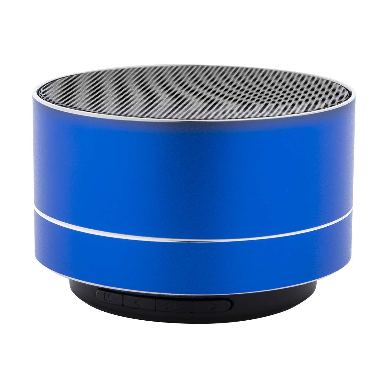 Cassa wireless in alluminio riciclato con rete metallica, luce LED sul fondo e batteria ricaricabile (300 mAh). Con funzioni di chiamata in vivavoce e riproduzione MP3 su micro SD. Cavo di ricarica USB incluso.