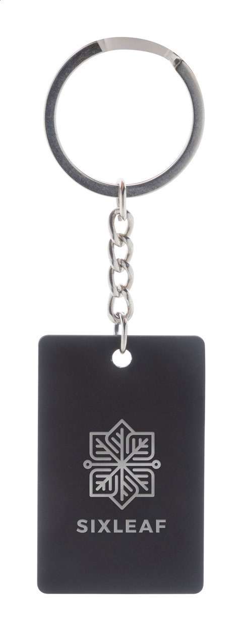 Portachiavi in acciaio riciclato a forma di rettangolo con finitura gommata. Trattamento speciale che permette l'incisione laser a specchio.