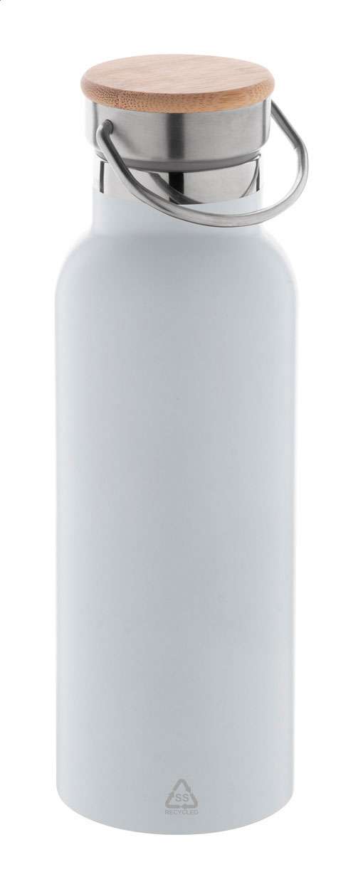 Borraccia isotermica da 500 ml. a doppia parete, in acciaio inox riciclato con coperchio in bambù.