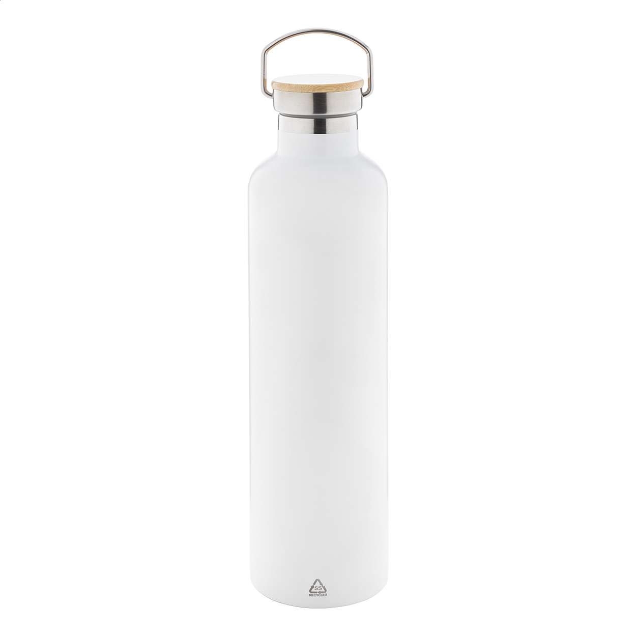 Borraccia termica con isolamento a doppia parete da 1000ml. in acciaio riciclato e coperchio in bambù.
