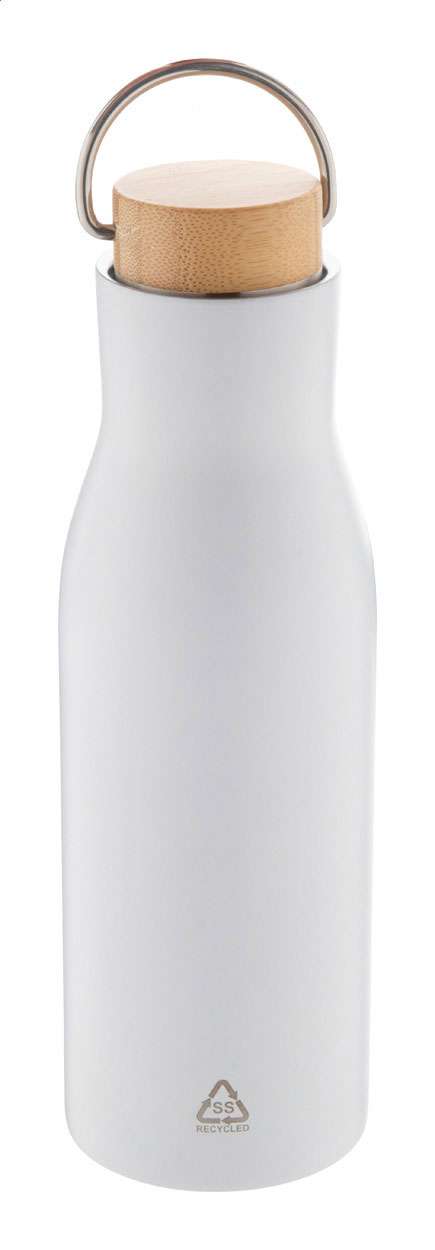 Borraccia termica da 500ml. in acciaio riciclato a doppia parete con tappo in bambù.