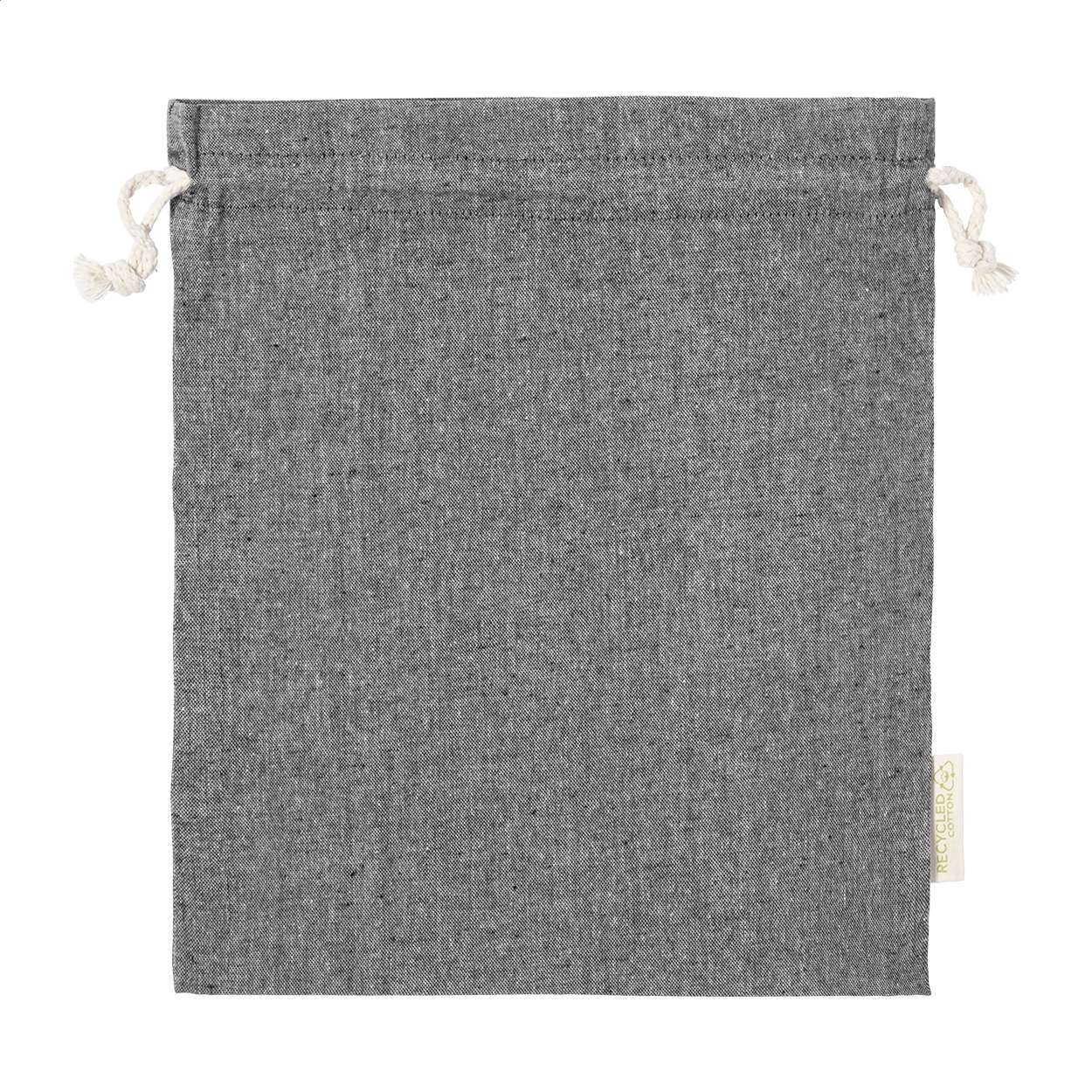 Sacca per alimenti riutilizzabile in cotone riciclato con chiusura a coulisse. 100% cotone riciclato, 105 g/m².
