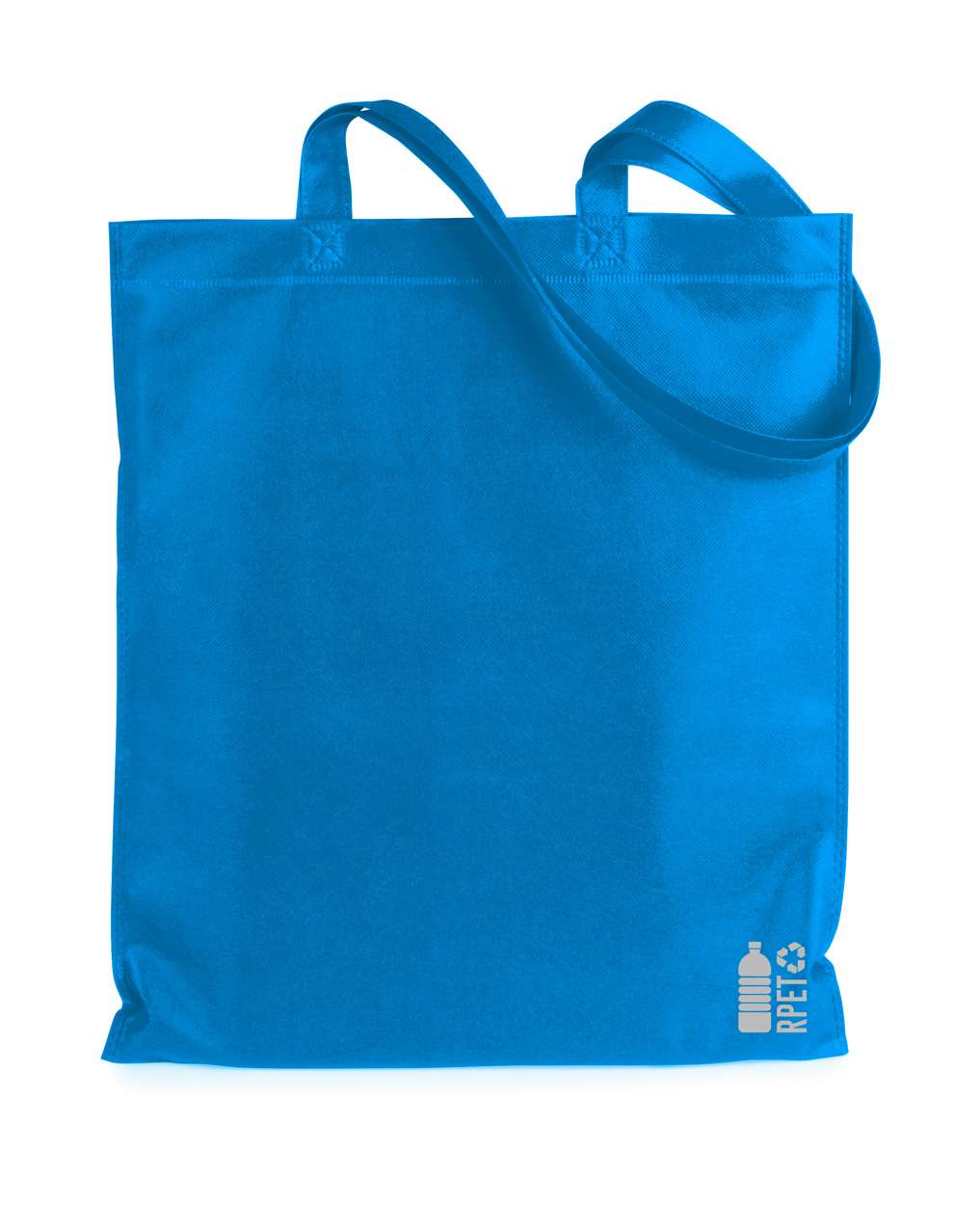 Borsa per la spesa in tessuto non tessuto RPET 70 g/m². con manici lunghi ed etichetta RPET.