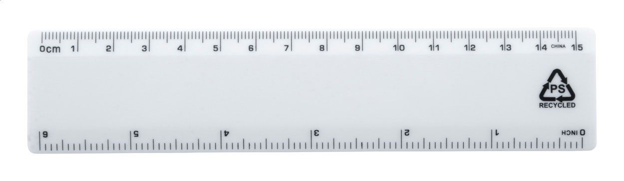 Righello in plastica PS riciclata, 15 cm.