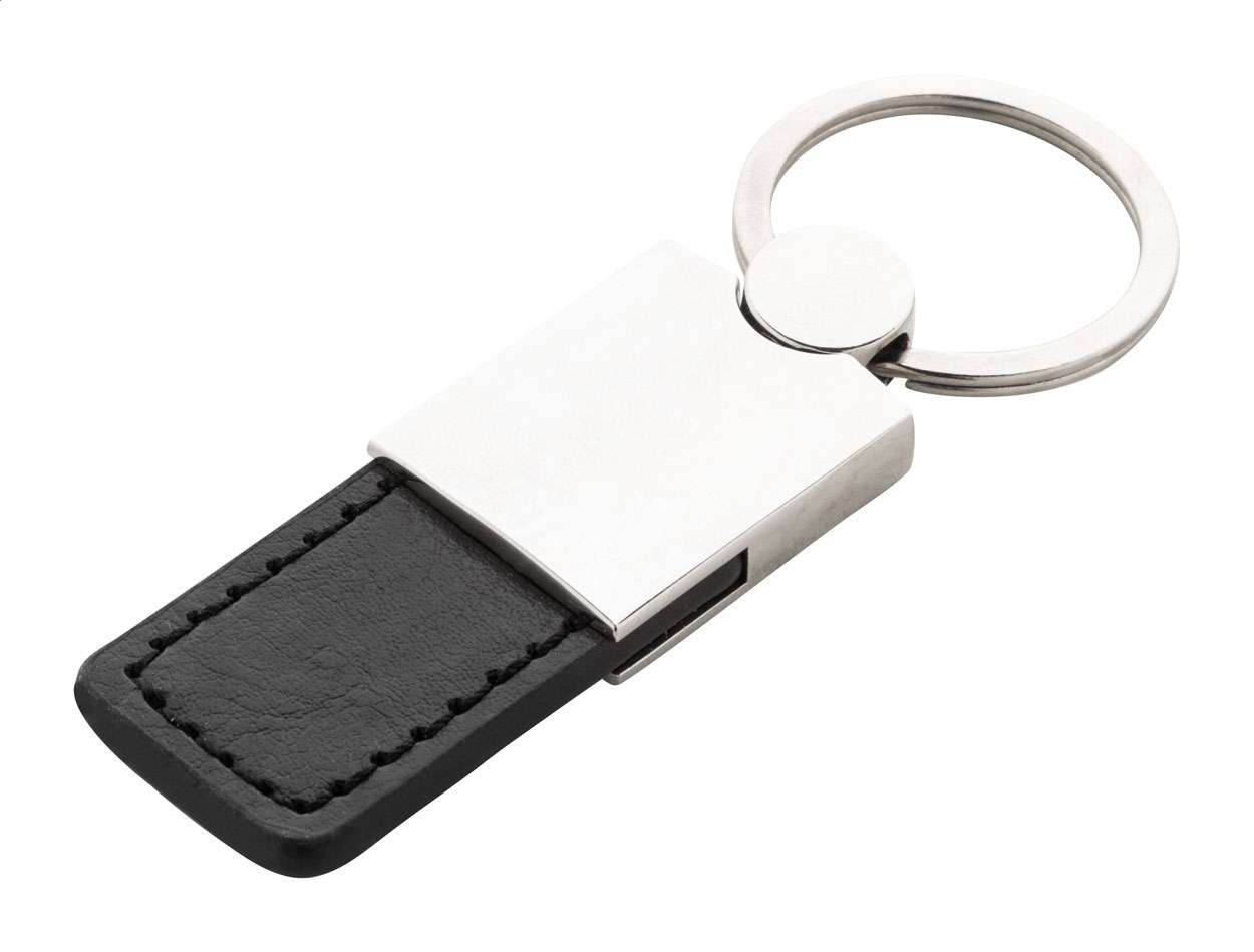Portachiavi in metallo e pelle PU, fornito in scatola di cartoncino kraft.