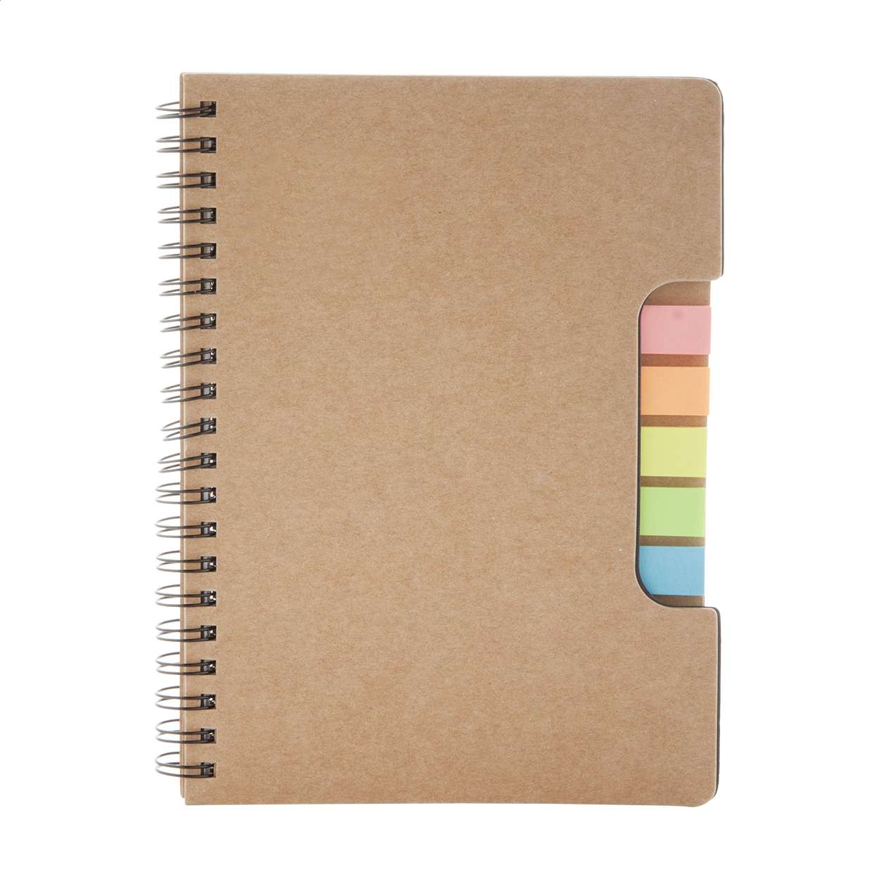 Quaderno a spirale con 60 fogli a righe, copertina in carta riciclata e note adesive (5 × 25 pezzi).