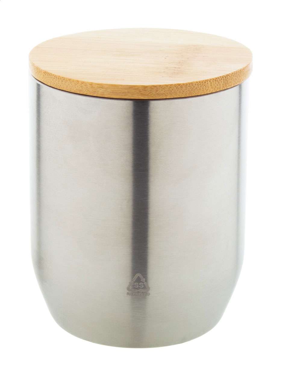 Tazza termica da 300ml. a doppia parete, in acciaio inox riciclato con coperchio in bambù.