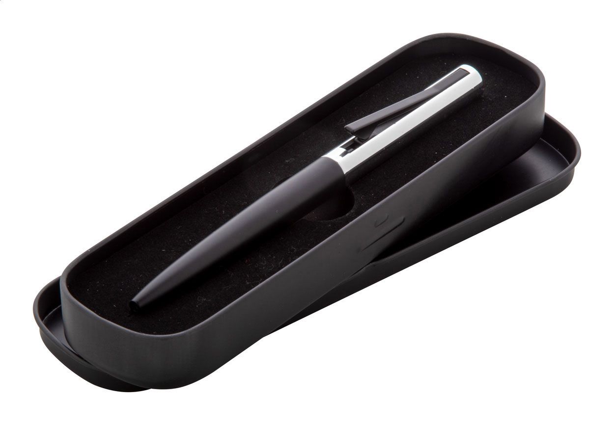 Penna a sfera in alluminio con refill blu. In confezione regalo nera.