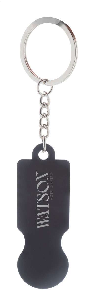 Portachiavi in acciaio riciclato con finitura gommata ideale per l'incisione laser a specchio ed inserto per il carrello della spesa.