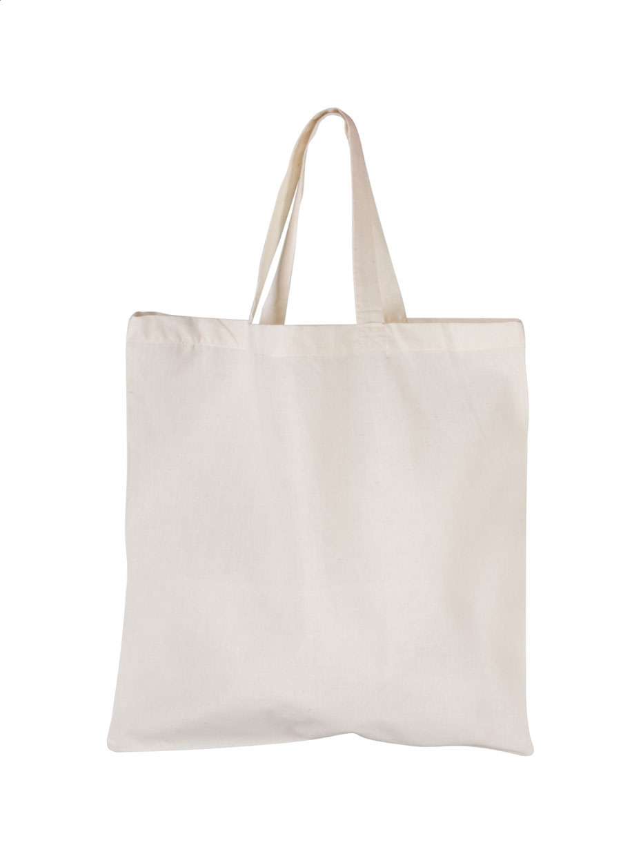 Borsa per la spesa riutilizzabile in cotone con manico corto (350 mm). 100% cotone, 95 g/m².