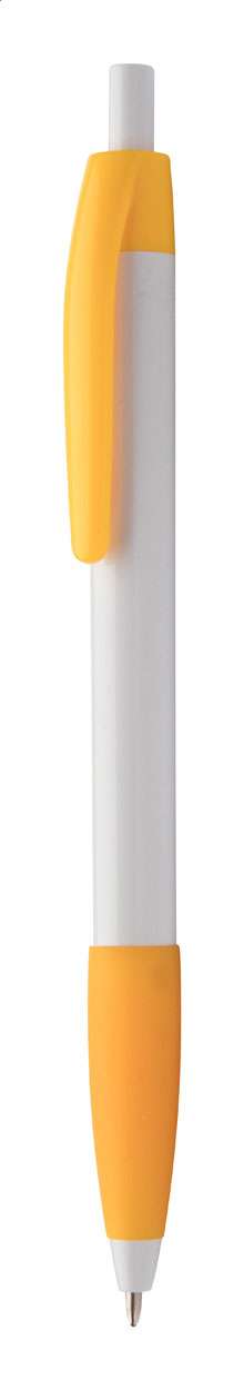 Penna a sfera in plastica con impugnatura in gomma colorata. Fornita con refill blu.